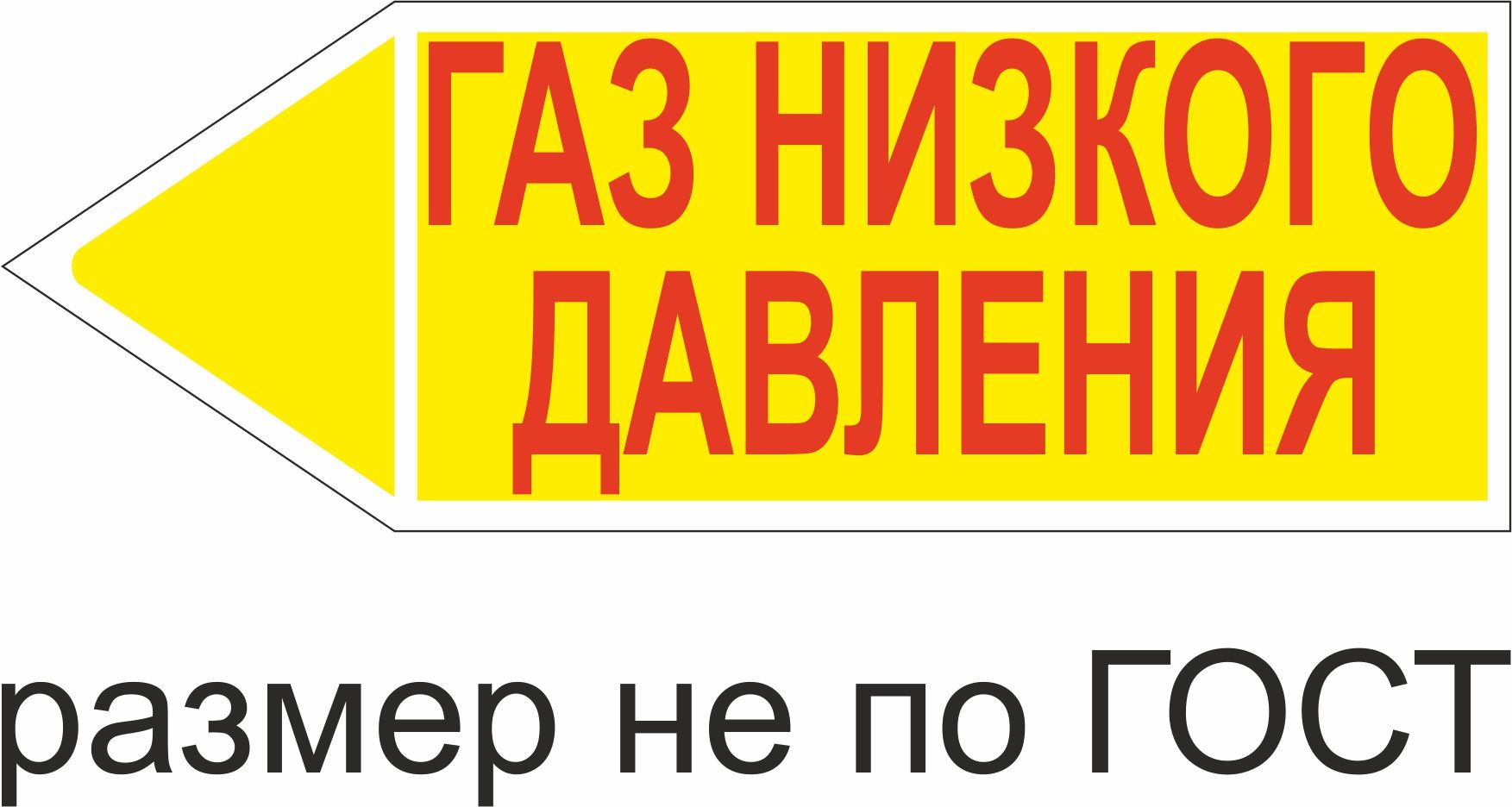 Маркер самоклеящийся Газ низкого давление 148х420 мм, фон желтый, буквы красные, налево