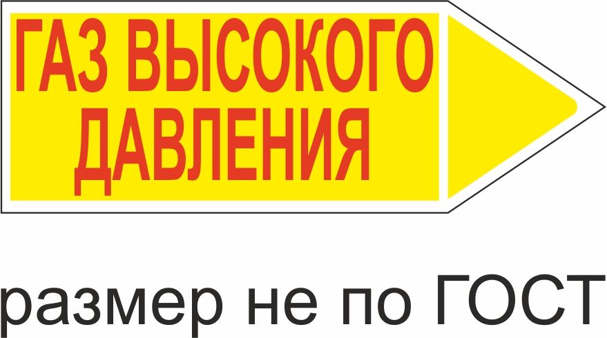 Маркер самоклеящийся Газ высокое давление 105х297 мм, фон желтый, буквы красные, налево
