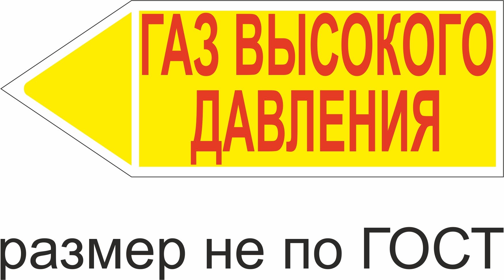 Маркер самоклеящийся Газ низкого давление 148х420 мм, фон желтый, буквы красные, направо