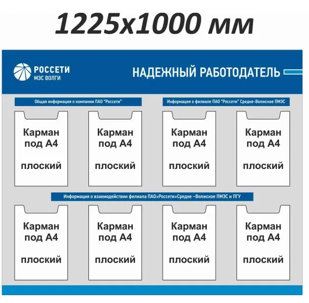 Стенд 1225x1000, ПВХ 4 ммНадежный работодатель_Россети МЭС Волги_1225х1000