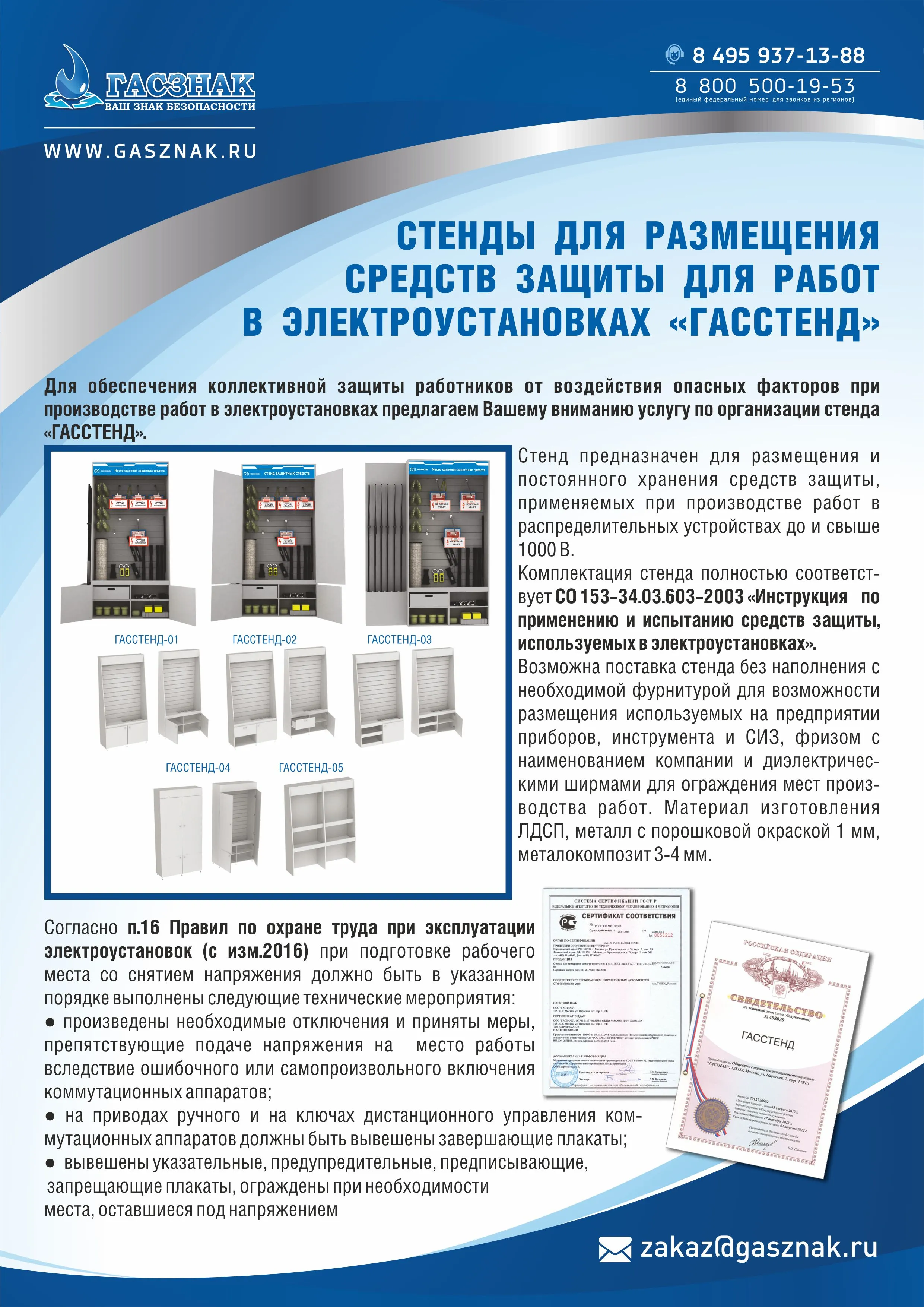 Стенд для хранения СИЗ для работ в электороустановках ГАССТЕНД