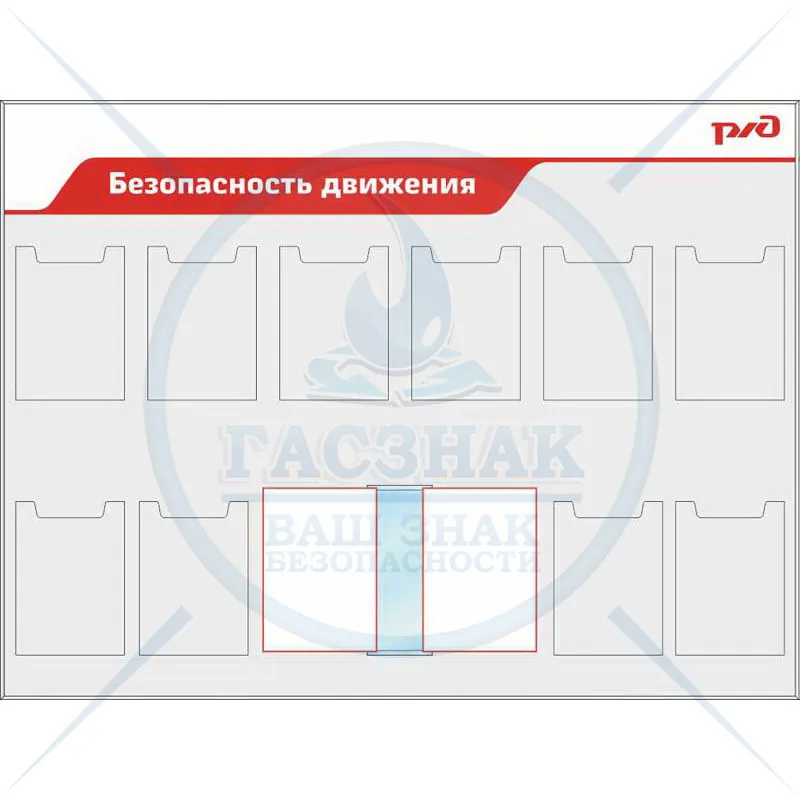 Стенды по охране труда для ОАО РЖД, пластиковый с алюминивым профилем, 5 объёмных карманов А4,1 карман А3 (Пластик ПВХ 4 мм; 1000х1000)