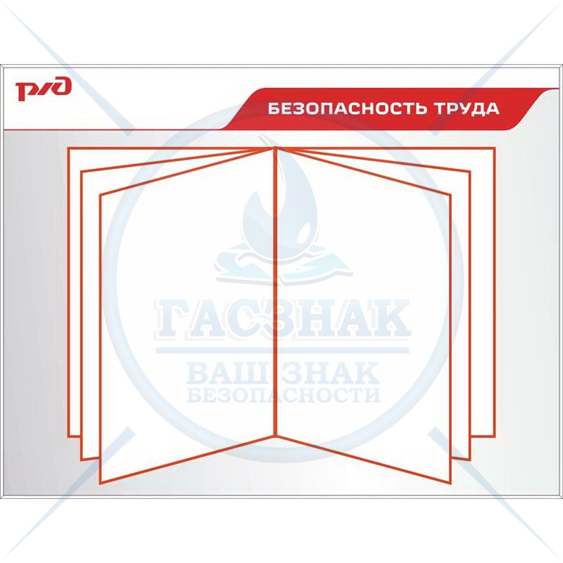 Стенд охрана труда РЖД, 4 объемных кармана А4 (600х1100; Пластик ПВХ 4 мм, алюминиевый профиль; )