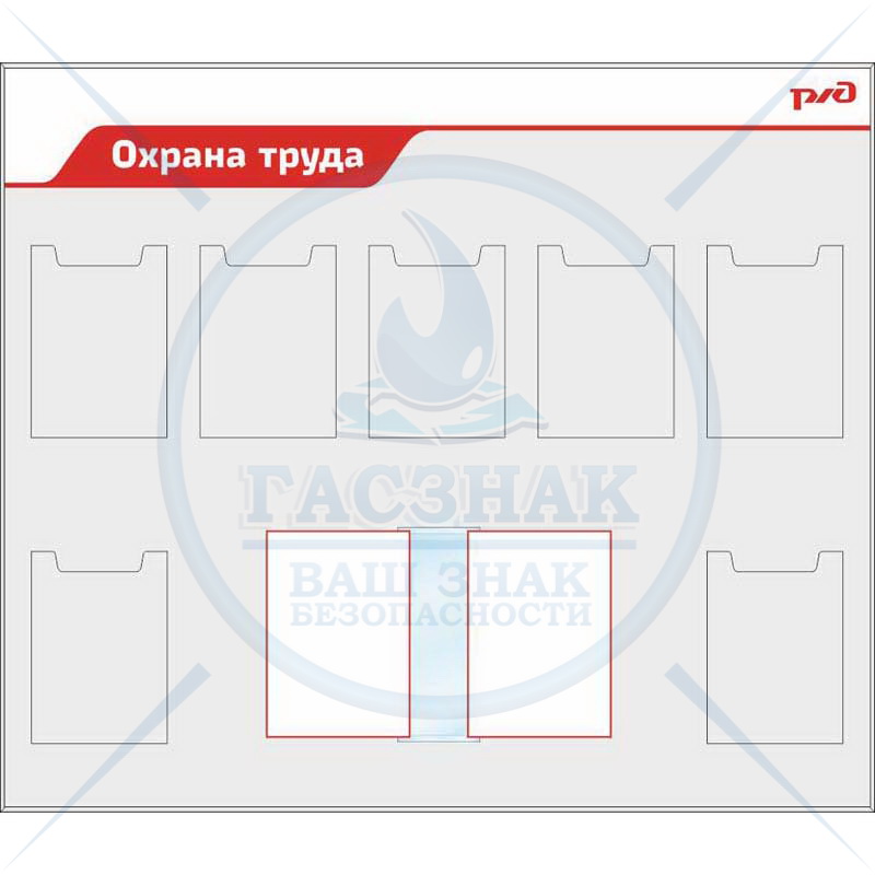 Стенд Рабочее место газосварщика для ОАО РЖД, 4 плаката А3, 1 плоский карман А3 (1000х1100; Пластик ПВХ 4 мм; Алюминиевый профиль)