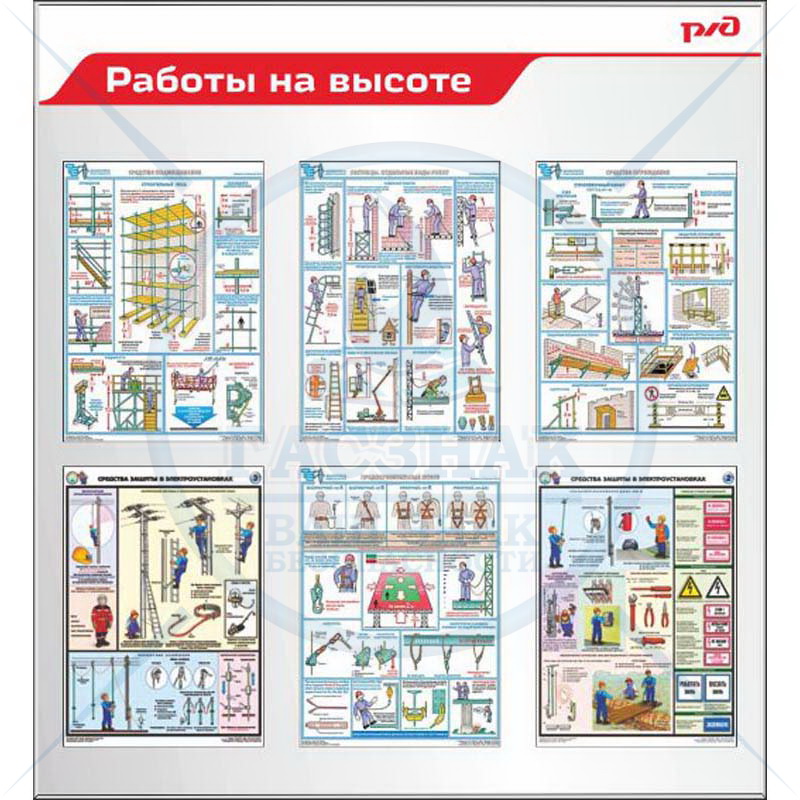 Стенд Работы на высоте, Логотип (1100х1200; Пластик ПВХ 4 мм; Алюминиевый профиль), Комплект - Безопасность работ на высоте – А3х3-1шт, Средства защиты в электроустановках – А3 Плакат №3-1шт, Предохранительные пояса строительные – А3 Плакат №1-1шт, Средства защиты в электроустановках – А3 Плакат №2-1шт