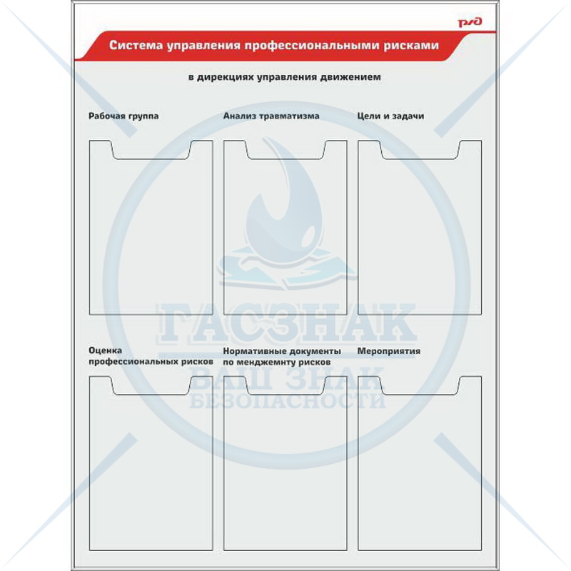 Стенд Информация РЖД, 2 кармана А4 пл., 2 кармана А4 объемн., 2 перекидныхй системы на 6 ячеек (1400х1200; Пластик ПВХ 4 мм, алюминиевый профиль; )