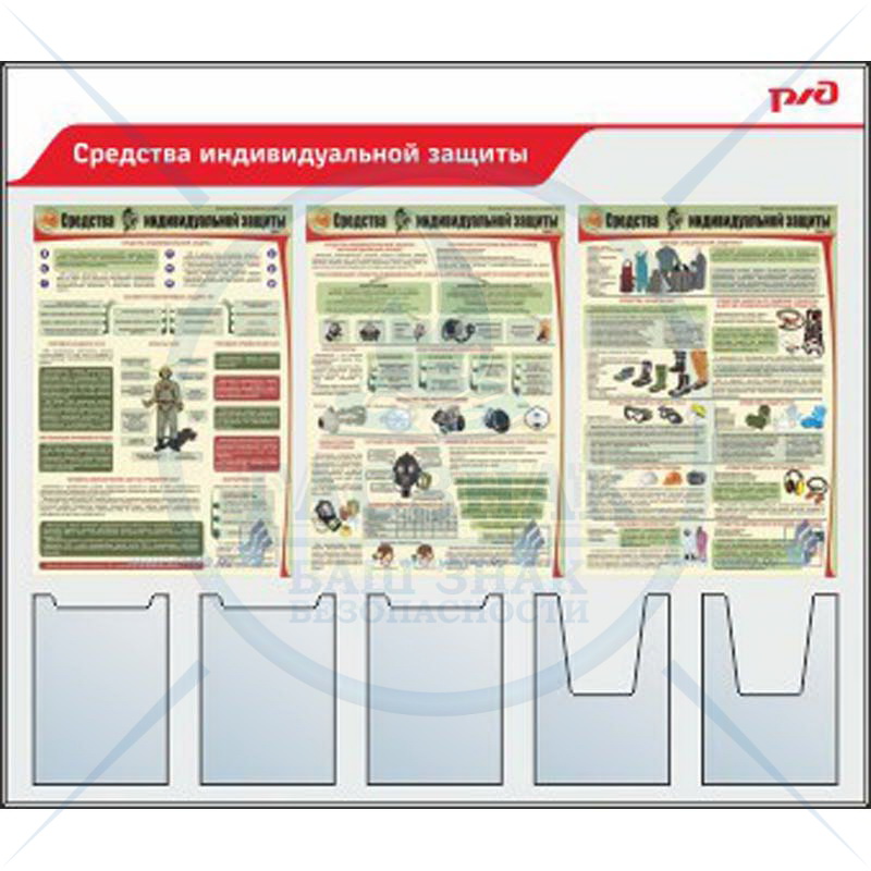 Стенд Промышленная безопасность РЖД, 8 объемных кармана А4 вертик. (1150х1100; Пластик ПВХ 4 мм, алюминиевый профиль; )