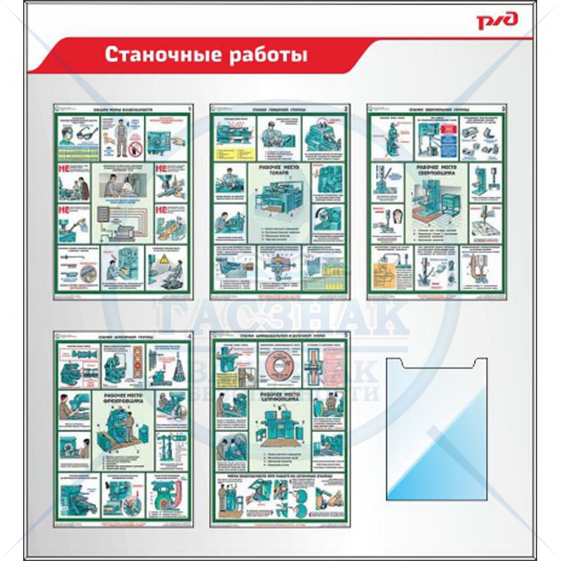 Стенды по охране труда для ОАО РЖД Вводный инструктаж по ОТ, профиль Nielsen, 3 плаката А2, 3 плоских кармана А4, 2 объёмных кармана (Пластик ПВХ 4 мм, алюминиевый профиль; 1400х1200)