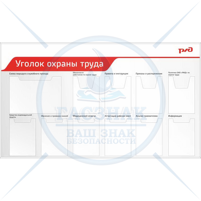 Стенд Профсоюзная жизнь РЖД, 6 карманов А4 пл., перекидная система на 6 ячеек (1200х1200; Пластик ПВХ 4 мм, алюминиевый профиль; )