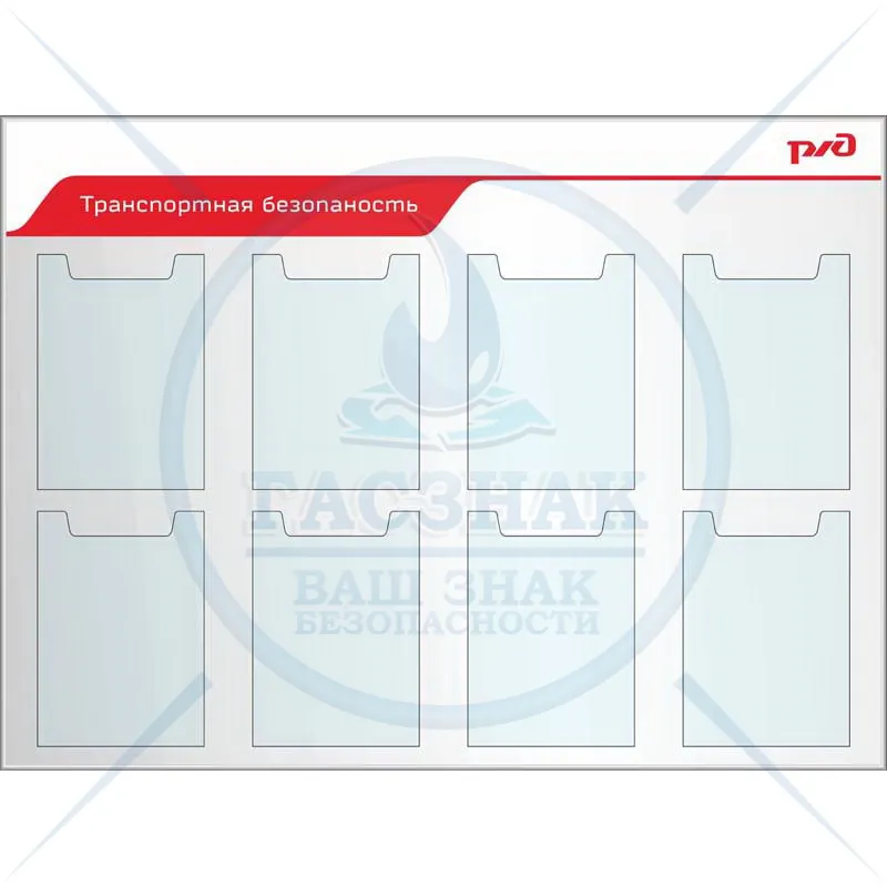 Стенд Приказы, инструкции РЖД, 10 карманов А4 пл. (1400х1200; Пластик ПВХ 4 мм, алюминиевый профиль; )