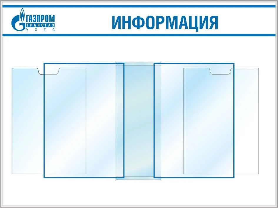 Стенд информационный РММ (карман вертикальный А4-2шт глубина 20мм, перекидная система А4 на 5 рамок-1шт (800х600; Пластик ПВХ 4 мм, алюминиевый профиль;)