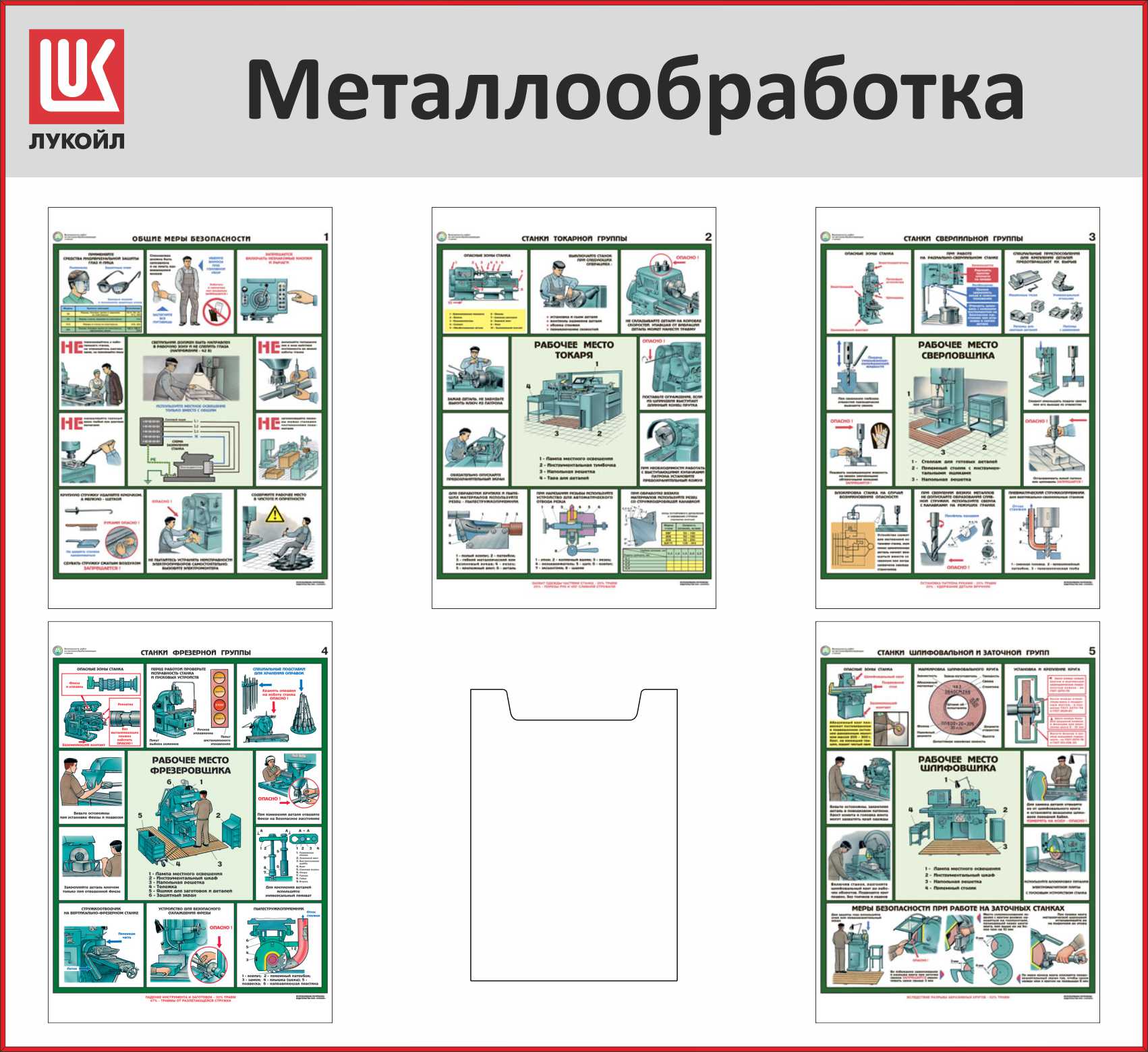 Стенд Металлообработка 5 плакатов А3, 1 кармана А4 (1100х1100; Пластик ПВХ 4 мм, алюминиевый профиль; )