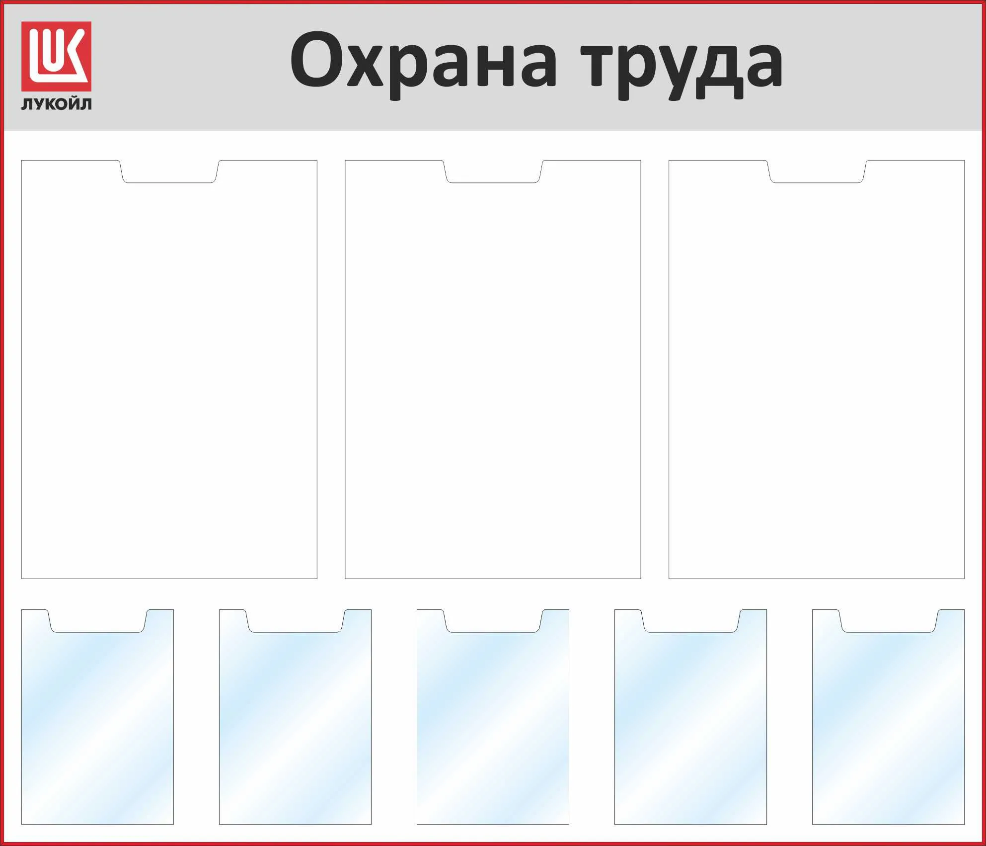 Стенд Охрана труда, Карман вертикальный плоский А4 - 6 шт, логотип (1000х1000; Пластик ПВХ 4 мм, пластиковый профиль; )
