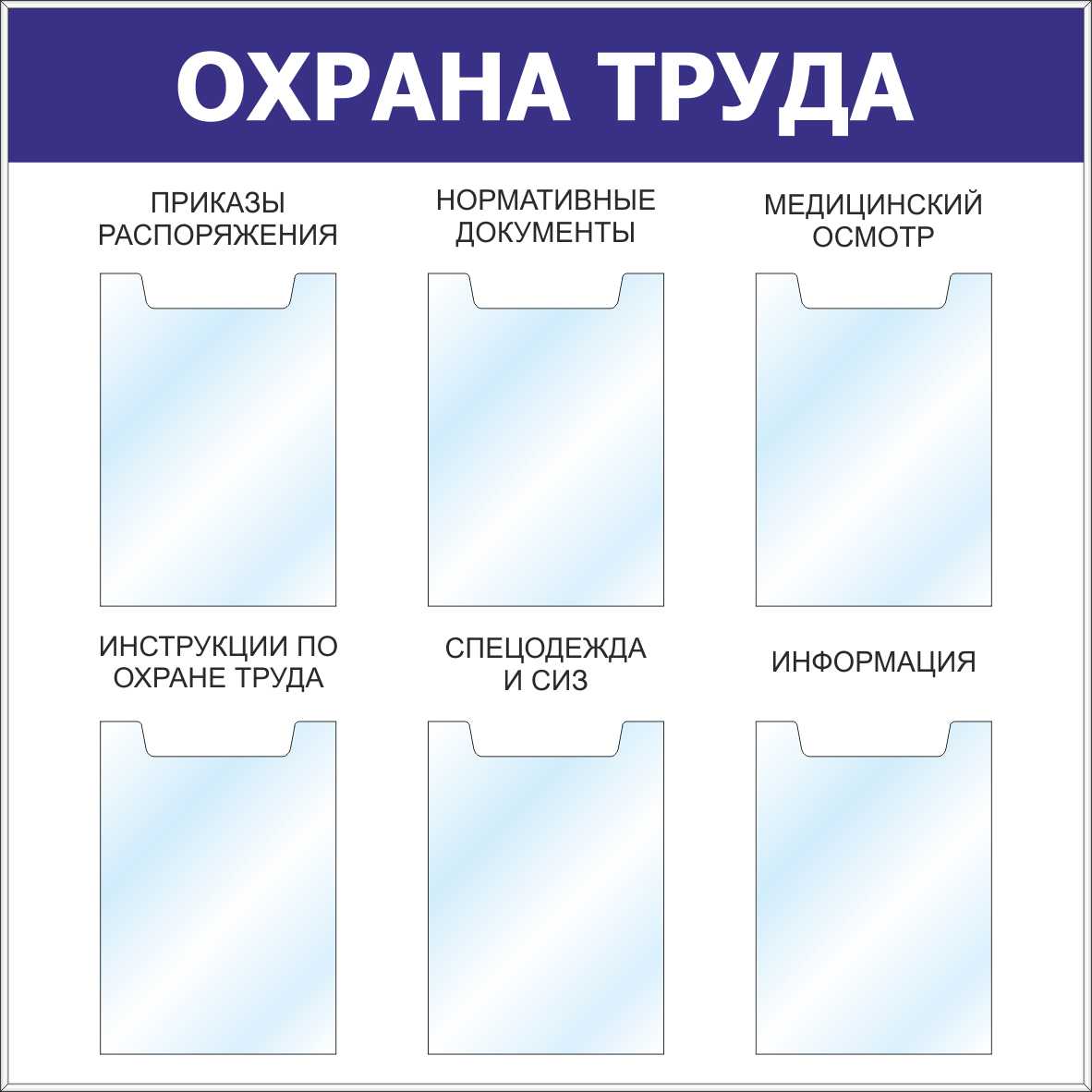 Стенд Рейтинг по охране труда , 1000х1200, ПВХ, 3 кармана А4 толщиной 5 мм, 1 карман 100х150 толщиной 5 мм, 6 карманов 100х30 плоские (вставка справа) на скотче; таблица учета показателей по ОТ должна быт пригодной для внесения подписей маркером. (ОЛ-РЕЙТ