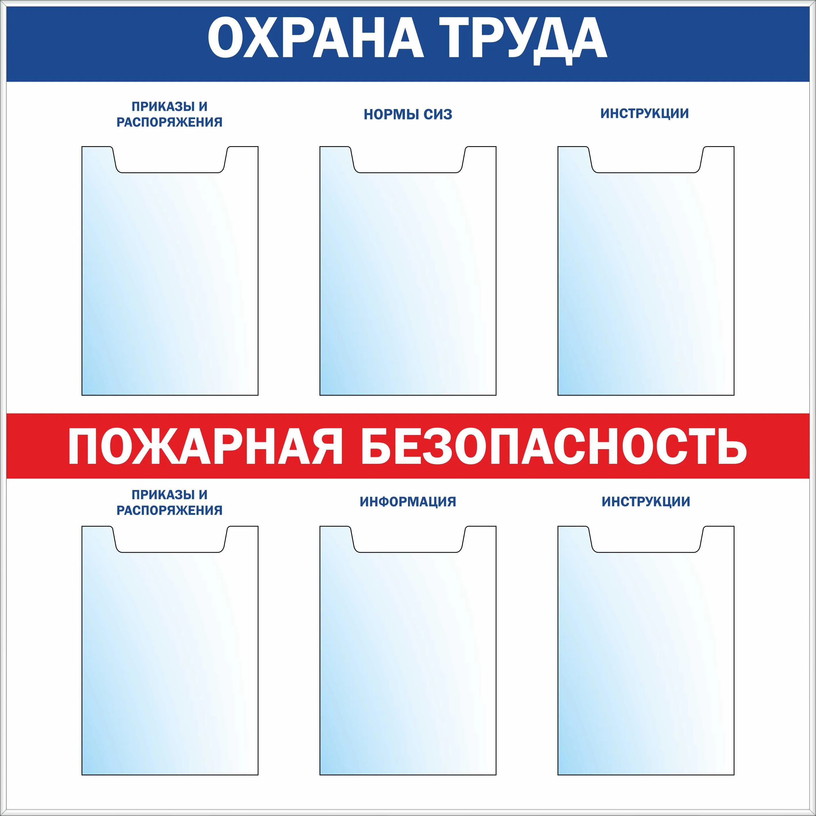 Стенд Охрана труда (Пластик ПВХ 4 мм, пластиковый профиль, 6 плоских кармана А4) (1000х1000; Пластик ПВХ 4 мм, пластиковый профиль; )