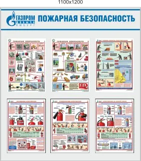 Стенд Пожарная безопасность, 6 плакатов А3, Логотип (1000х1100; Пластик ПВХ 4 мм, пластиковый профиль; Пластиковый красный)