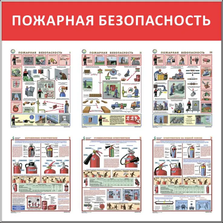 Стенд Пожарная безопасность, 6 плакатов А3, Логотип (1000х1100; Пластик ПВХ 4 мм, пластиковый профиль; Пластиковый красный)