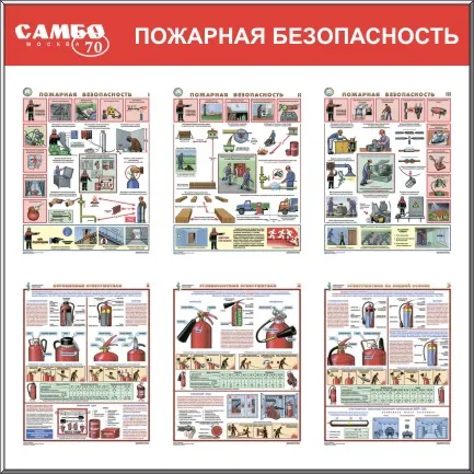 СтендПожарная безопастность, 6 плакатов А3 (1100х1200; Пластик ПВХ 4 мм, Алюминиевый профиль)