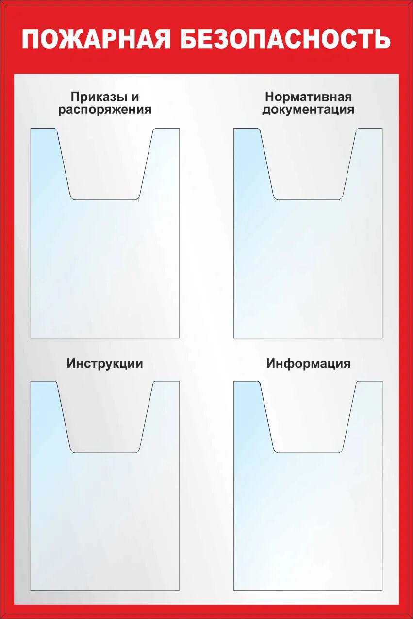 Стенд для ОТ пожарная безопасность, 6 плакатов А3 (1 200х1 000; Пластик ПВХ 4 мм, Алюминиевый профиль)