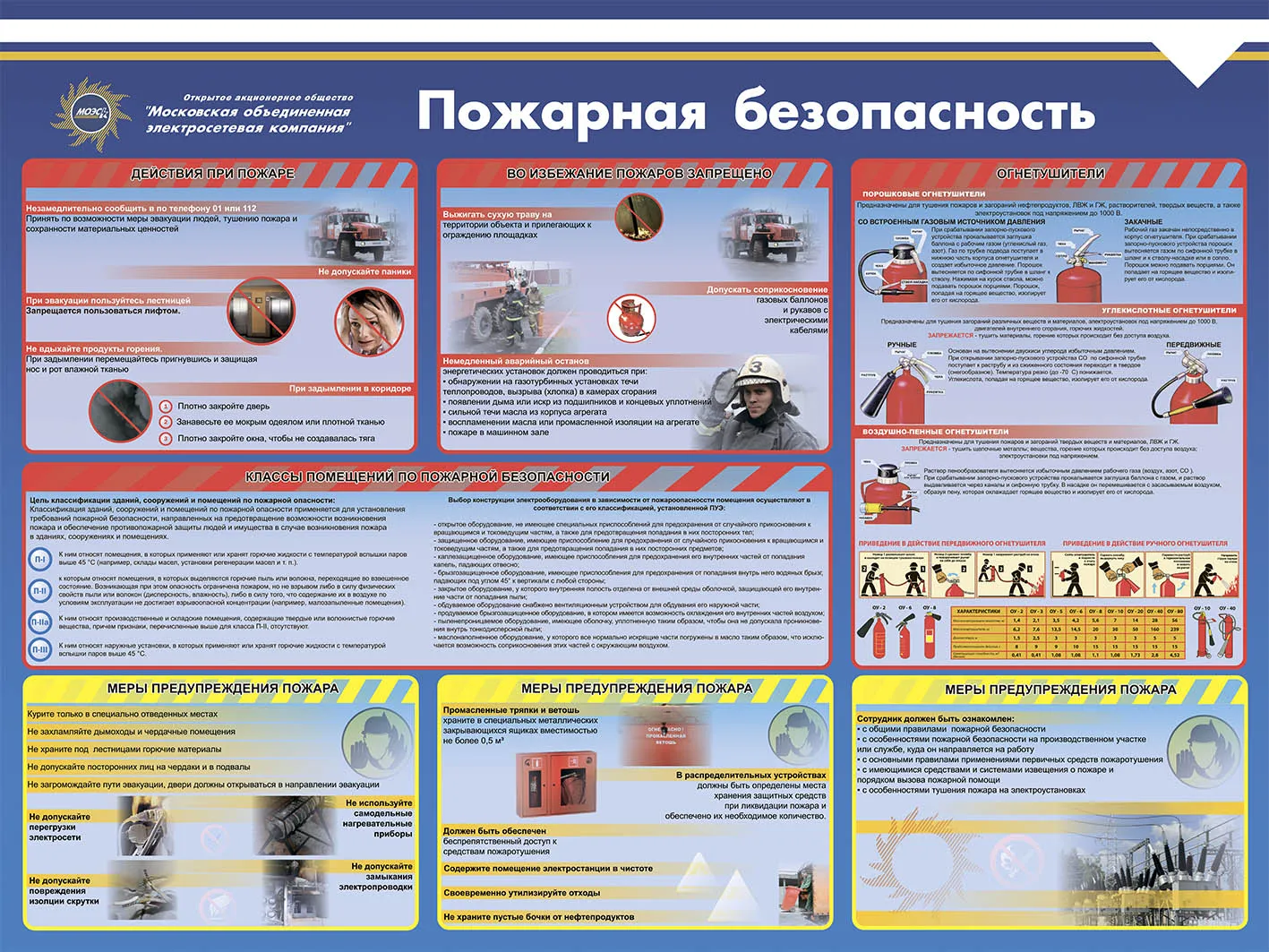 Стенд Пожарная безопасность, Логотип (1600х1000; Пластик ПВХ 4 мм; 3 кармана А4, Алюминиевый профиль) МОЭСК