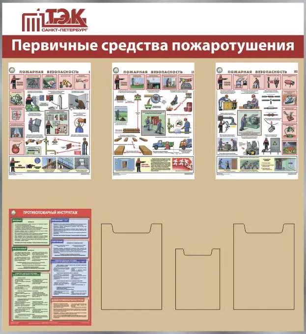 Стенд Пожарная безопасность. Плакаты А2х2шт., логотип, Логотип (1000х1000; Пластик ПВХ 4 мм, пластиковый профиль; Пластиковый)